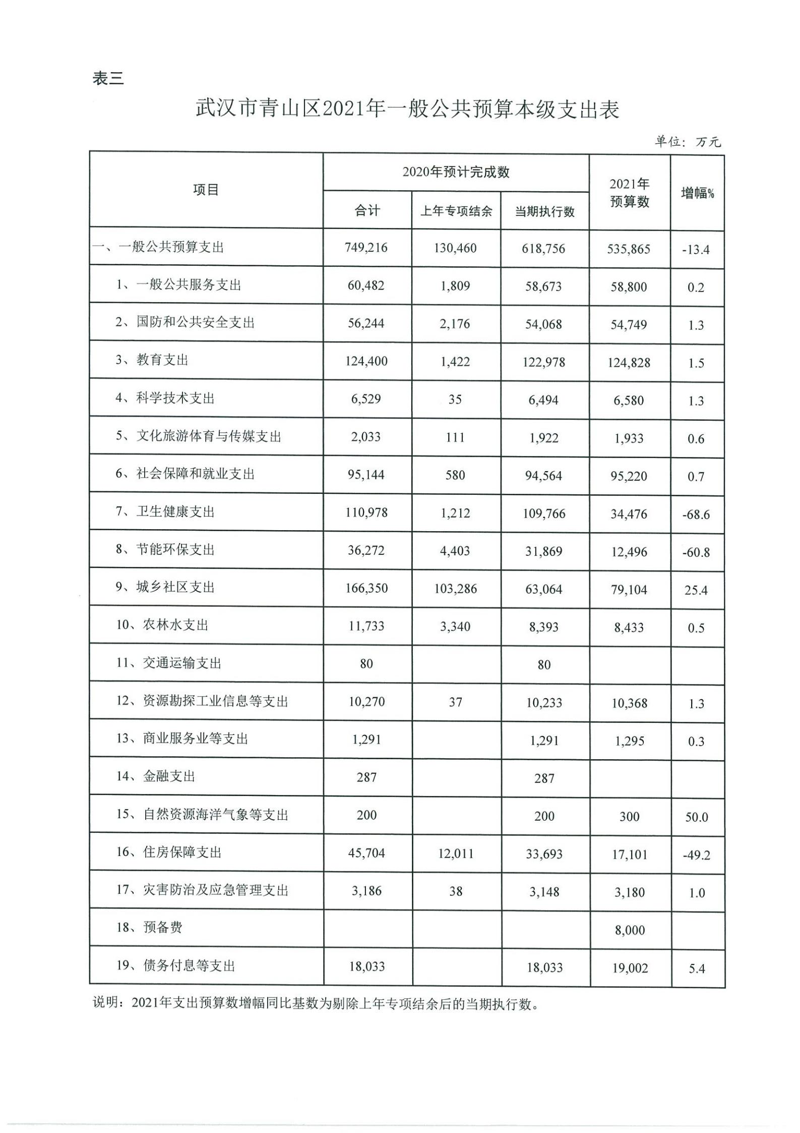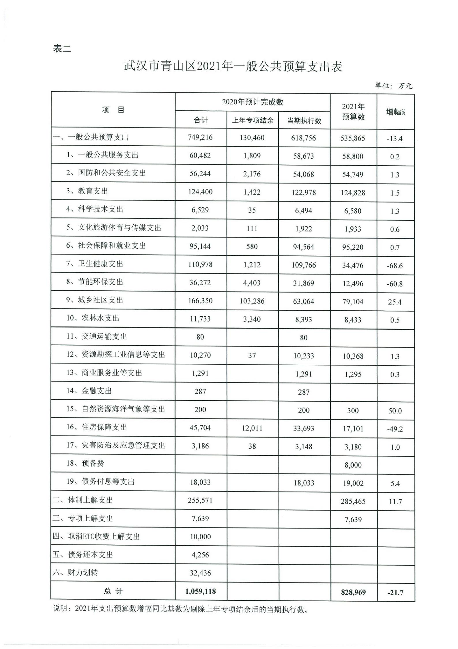 武汉市青山区2020年预算执行情况和2021年预算草案公开表格