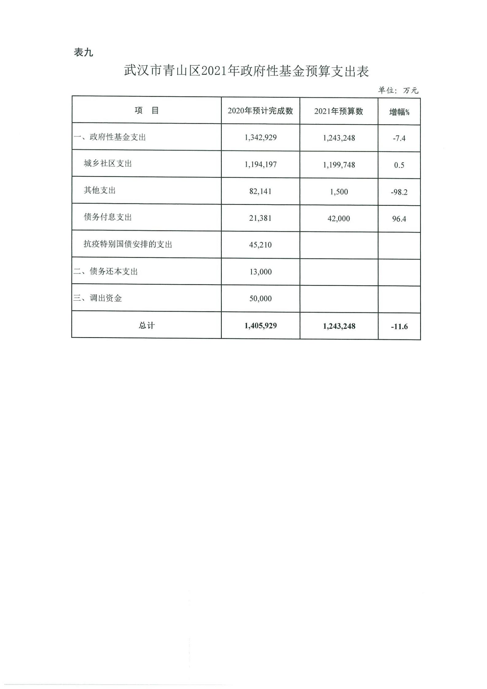 表九、武汉市青山区2021年政府性基金预算支出表