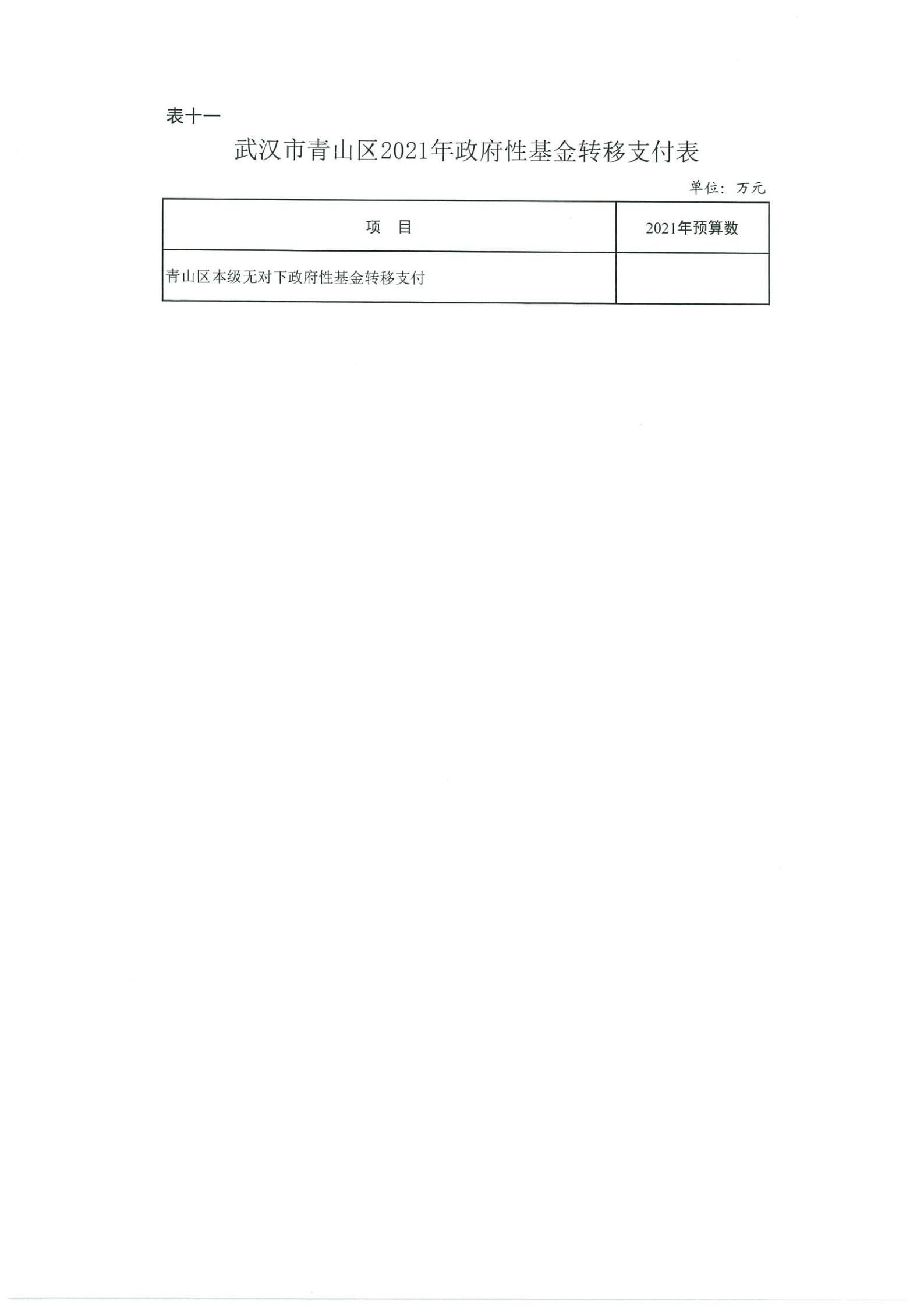 表十一、武汉市青山区2021年政府性基金转移支付表