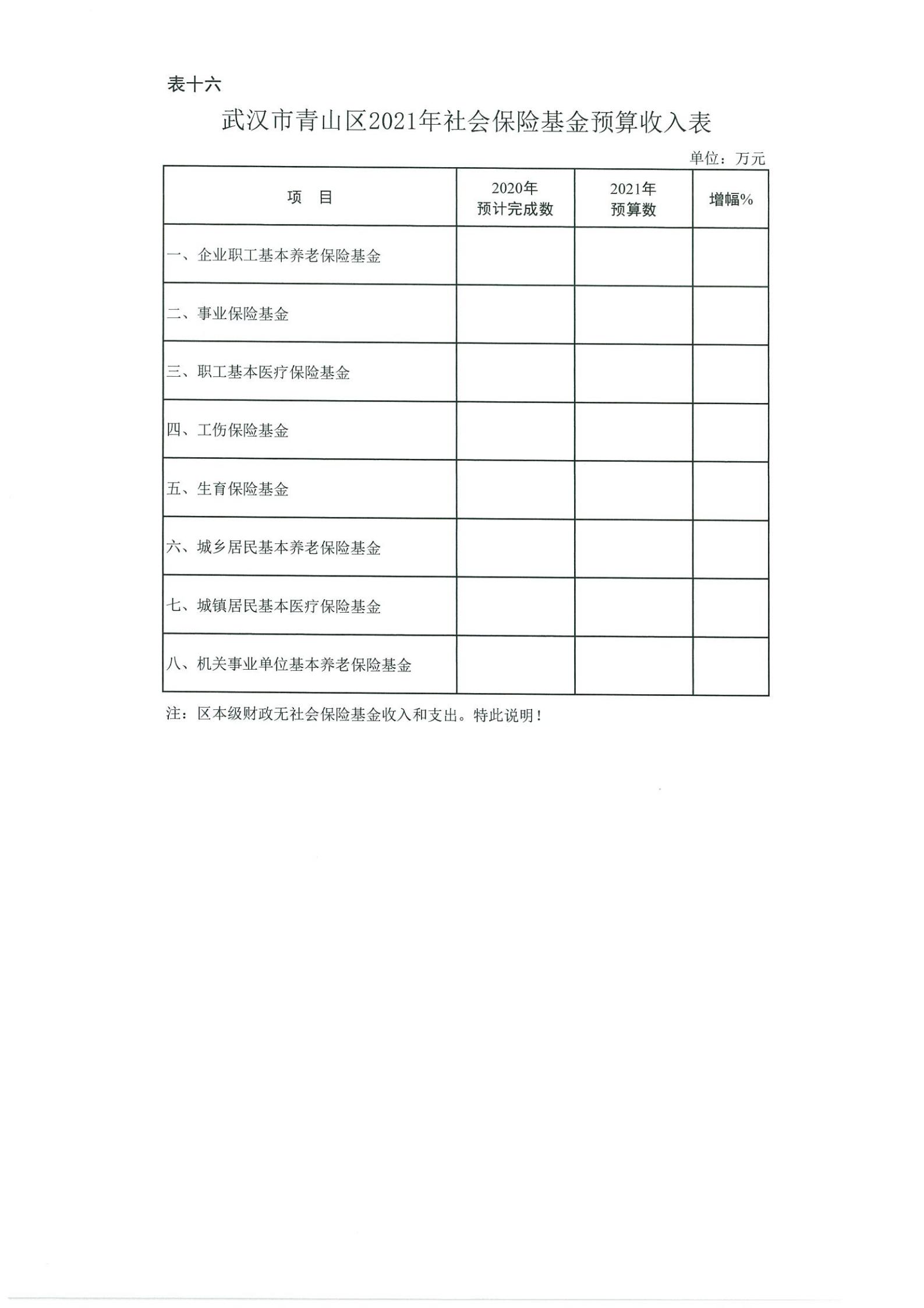 表十六、武汉市青山区2021年社会保险基金预算收入表