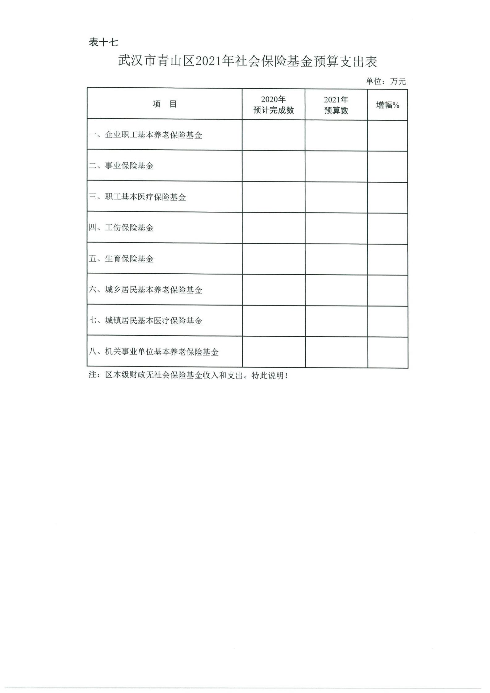 表十七、武汉市青山区2021年社会保险基金预算支出表