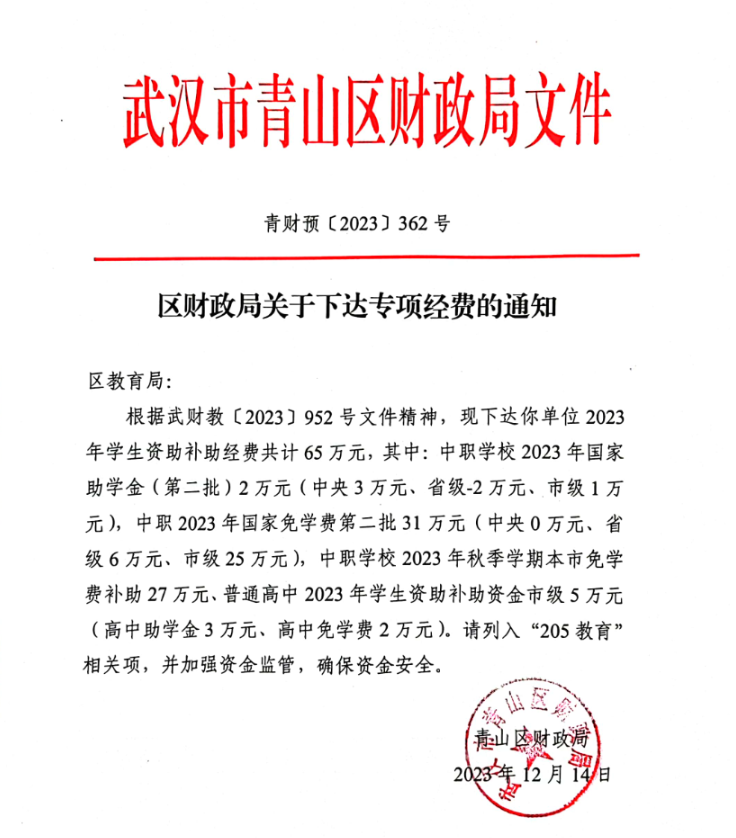 区财政局关于下达专项经费的通知 青财预[2023]362号.pdf