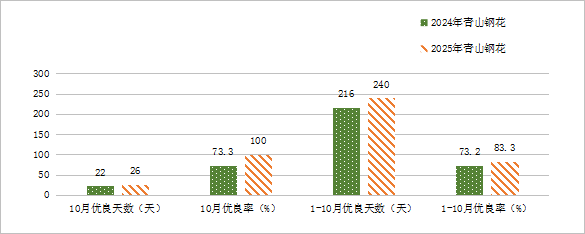 图1 2025年10月、1-10月青山钢花与去年同期优良天数及优良率