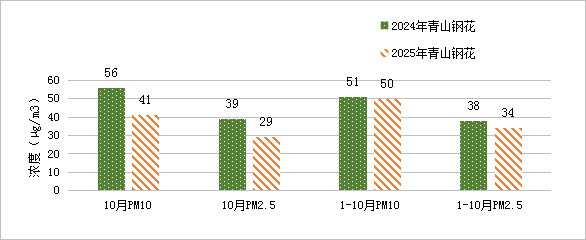 图2 2025年10月、1-10月青山钢花与去年同期PM10和PM2.5浓度