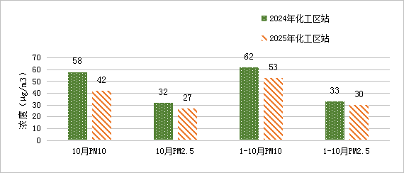 图5 2025年10月、1-10月化工区与去年同期PM10和PM2.5浓度