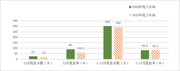 图4 2025年12月、1-12月化工区与去年同期优良天数及优良率