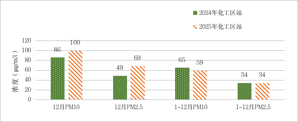 图5 2025年12月、1-12月化工区与去年同期PM10和PM2.5浓度