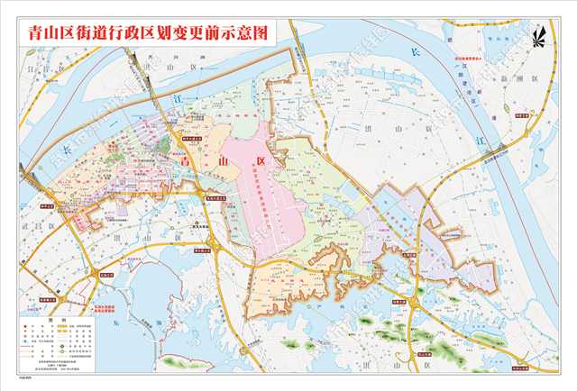 对未列入街道管辖的宝武集团武钢青山主厂区、武钢北湖经济技术开发公司分别划入就近的工人村街道、白玉山街道;长江水域面积自西向东分别就近划入红卫路街道、新沟桥街道、红钢城街道、青山镇街道和八吉府街道5个街道。